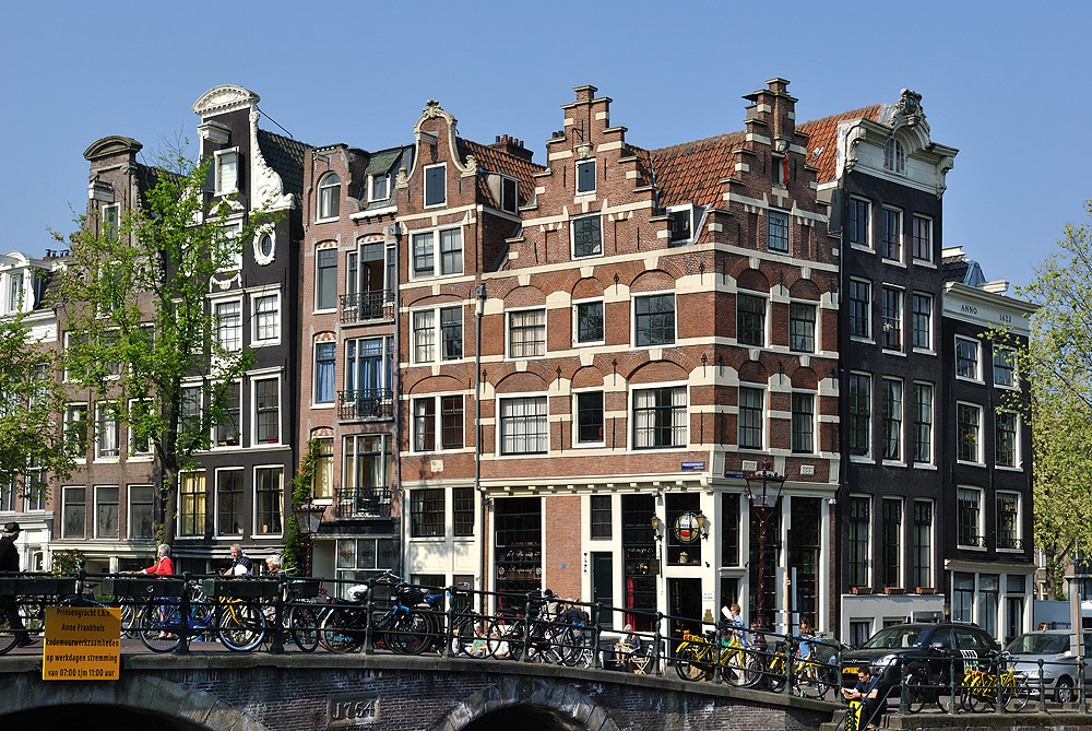 domečky na rohu Brouwersgrachtu a Prinsengrachtu |