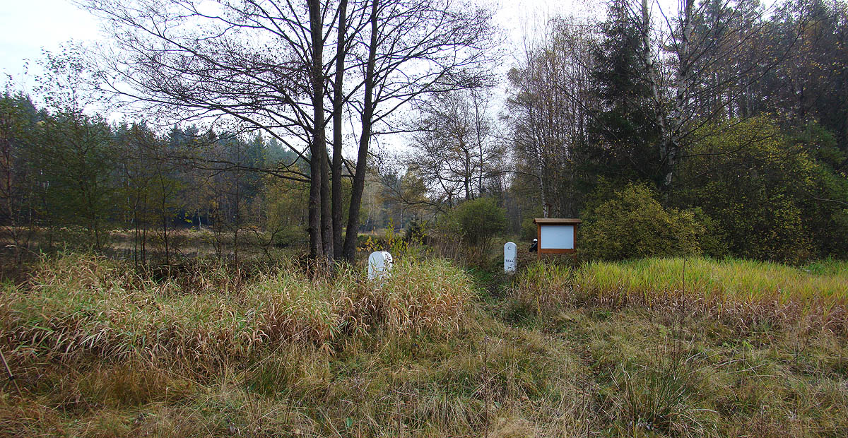 první pohled z roští na areál nejzápadnějšího bodu ČR |