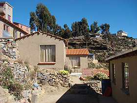 Hostel Inti Wasi Lodge stál 80Bs. za osobu. Jedná se o jednoduché domky s vlastní koupelnou vysoko ve svahu na jezerem.Součástí malého areálu s několika baráčky byla i malá jídelna, kde se dalo celekm solidně povečeřet (dohromady ve třech jsme za komplet večeři platili 100Bs.). Majitelé hostalu jsou úslužní a hovoří pouze španělsky. Na pokojích jsou k dispozici teplé deky, spacák nebyl nevyhnutelně nutný.