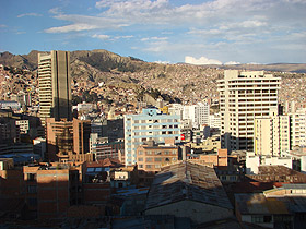 Hotel Milton - asi nejlepší ubytování na naší cestě co do poměru kvalita-cena. Třílůžkový pokoj s vlastní koupelnou, TV a nádherným výsledem na La Paz stál 210Bs. Obsluha v recepci je přátelská a hovoří anglicky.