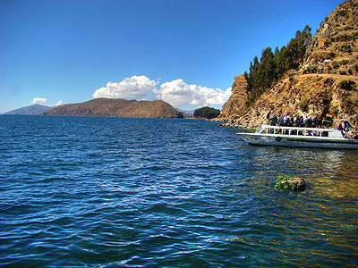 10.9.2008 - Druhý den odjíždí loď do Copacabany v 10:45 a kupodivu stojí o pět Boliviánů víc, než na cestě sem. Cesta na pevninu trvá zhruba hodinu.