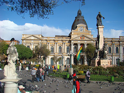 Ve tři hodiny jsme zpátky v La Pazu a máme nejvyšší čas na nějakou krátkou prohlídku. Začínáme na náměstí Pedro Murilla před prezidentským palácem.