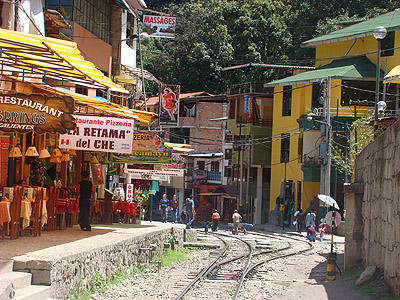 A jsme zpátky v Aquas Calientes (zpáteční jízdenka na autobus k Machu Picchu 14USD). Vlaky jedoucí z Cuzca kdysi končívaly tady mezi baráčky nad řekou Urubambou...