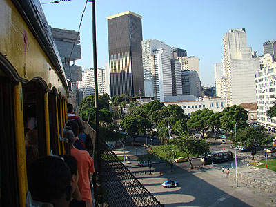 Tomu říkám adrenalin - cesta stařičkou tramvají (1,20BRL) po 30m vysokém akvaduktu. Zdá se vám, že místo zábradlí je na okraji akvaduktu natažené jenom vetché pletivo? Tak to se vám nezdá!
