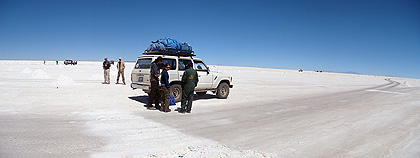| na začátku Salar de Uyuni - náš džíp a jeho posádka
