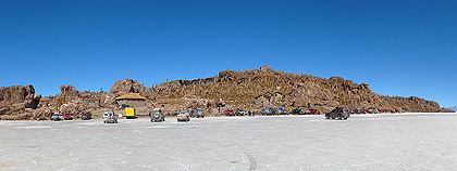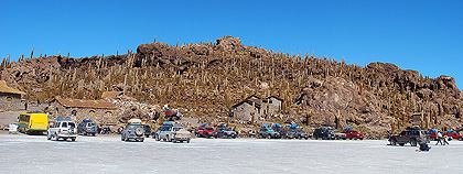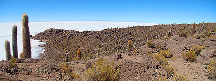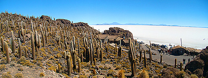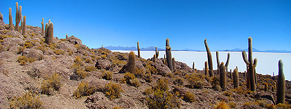 | Isla Incahuasi uprostřed solné pláně Salar de Uyuni |