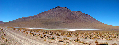 | výhled na Salar de Chiguana a  vulkán Luxsar (5398m) |