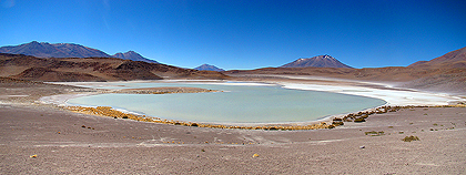 | zelenavá laguna Verde (4324m) a uprostřed vulkán LIcancabur (5868m) |  |