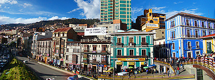 | budovy na avenida Mariscal Santa Cruz z nadchodu na Plaza San Francisco |